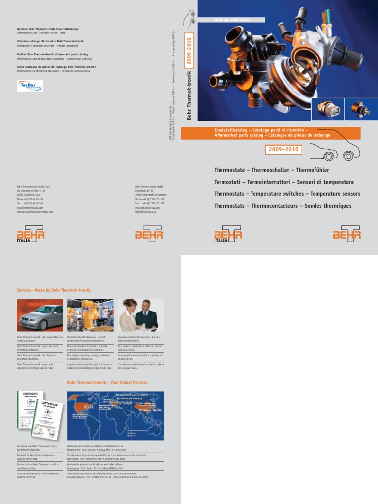Catalogue Automotive Behr Thermostats Motor Vehicle